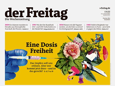 Ausgaben Ausgabe 50/2021 vom 16.12.2021 : Entspannt euch mal! Russland/NATO: Wie ein Krieg um die Ukraine verhindert werden kann Ausgabe 49/2021 vom 09.12.2021 : Nur so besiegen wir Corona Die Pandemie muss weltweit enden, sonst endet sie nie Ausgabe 48/2021 vom 02.12.2021 : Und wo bleibt die Gerechtigkeit? Cannabis, Klima, Regenbogen – die Ampel kämpft für vieles, nur nicht für die Armen Ausgabe 47/2021 vom 25.11.2021 : Bahn frei Wie Deutschland in zehn Jahren zum Paradies auf Schienen wird Ausgabe 46/2021 vom 18.11.2021 : Pandemie jetzt mit Ampelmann Ändert sich mit der neuen Regierung die Coronapolitik in Deutschland? Ausgabe 45/2021 vom 11.11.2021 : Ich kann nicht mehr! Ob Klima oder Corona: Das Abwälzen der Probleme auf den Einzelnen überfordert alle Ausgabe 44/2021 vom 04.11.2021 : Droht jetzt Krieg? Es geht um mehr als eine Insel im Pazifik: Wie der Konflikt zwischen China und den USA eskaliert Ausgabe 43/2021 vom 28.10.2021 : Missbrauch: Hört endlich zu! Ein Kind pro Klasse erlebt sexuelle Gewalt. Wie können wir das Schweigen brechen? Ausgabe 42/2021 vom 21.10.2021 : Nie sind wir privat Was passiert mit einer Gesellschaft, in der alles öffentlich ist? Ausgabe 41/2021 vom 14.10.2021 : Technik, die begeistert Erfindergeist oder Verzicht: Wie geht grün-gelbe Klimapolitik? Ausgabe 40/2021 vom 07.10.2021 : Die Zerstörung der CDU Angela Merkel hinterlässt eine Gurkentruppe. Wohin steuert die Union? Ausgabe 39/2021 vom 30.09.2021 : Eine schrecklich nette Koalition Bekommt Olaf Scholz, was er verdient? « Zurück 18/43 Weiter »